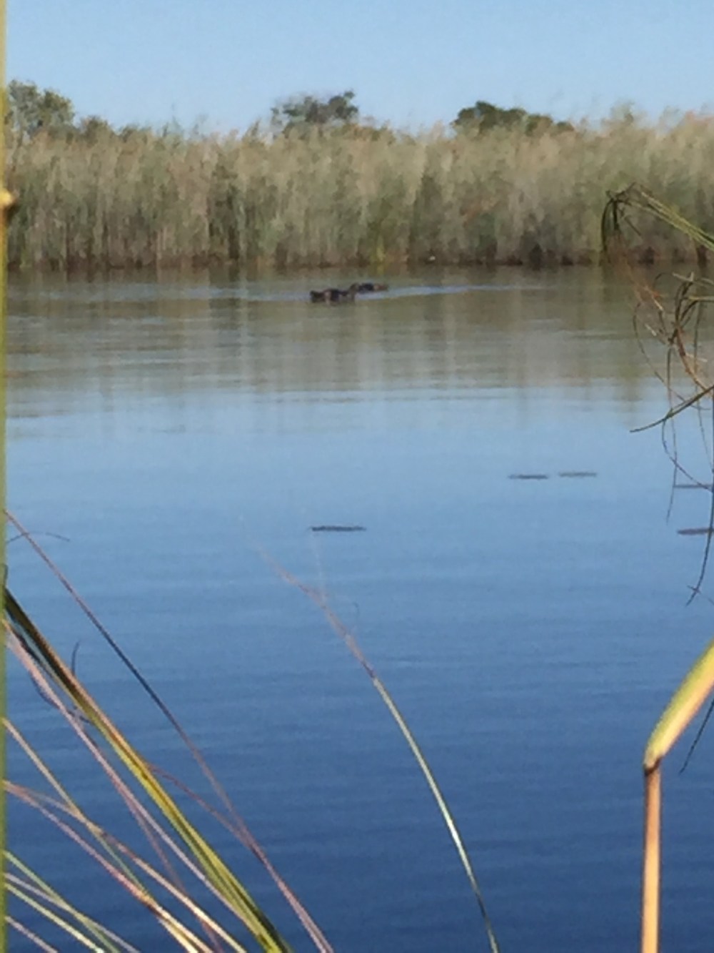 When our collective panic was almost tangible, or polers swiftly reversed the makoros and arrowed us away through the reeds. I was later to learn from my boat-mate, Jürgen, that, according to the German-language Namibian newspapers, a makoro poler had been killed by a hippo a mere fortnight ago. I thanked him for not mentioning this prior to our encounter and shook my head in wonder at the laid-back attitudes of this poor soul’s comrades.
