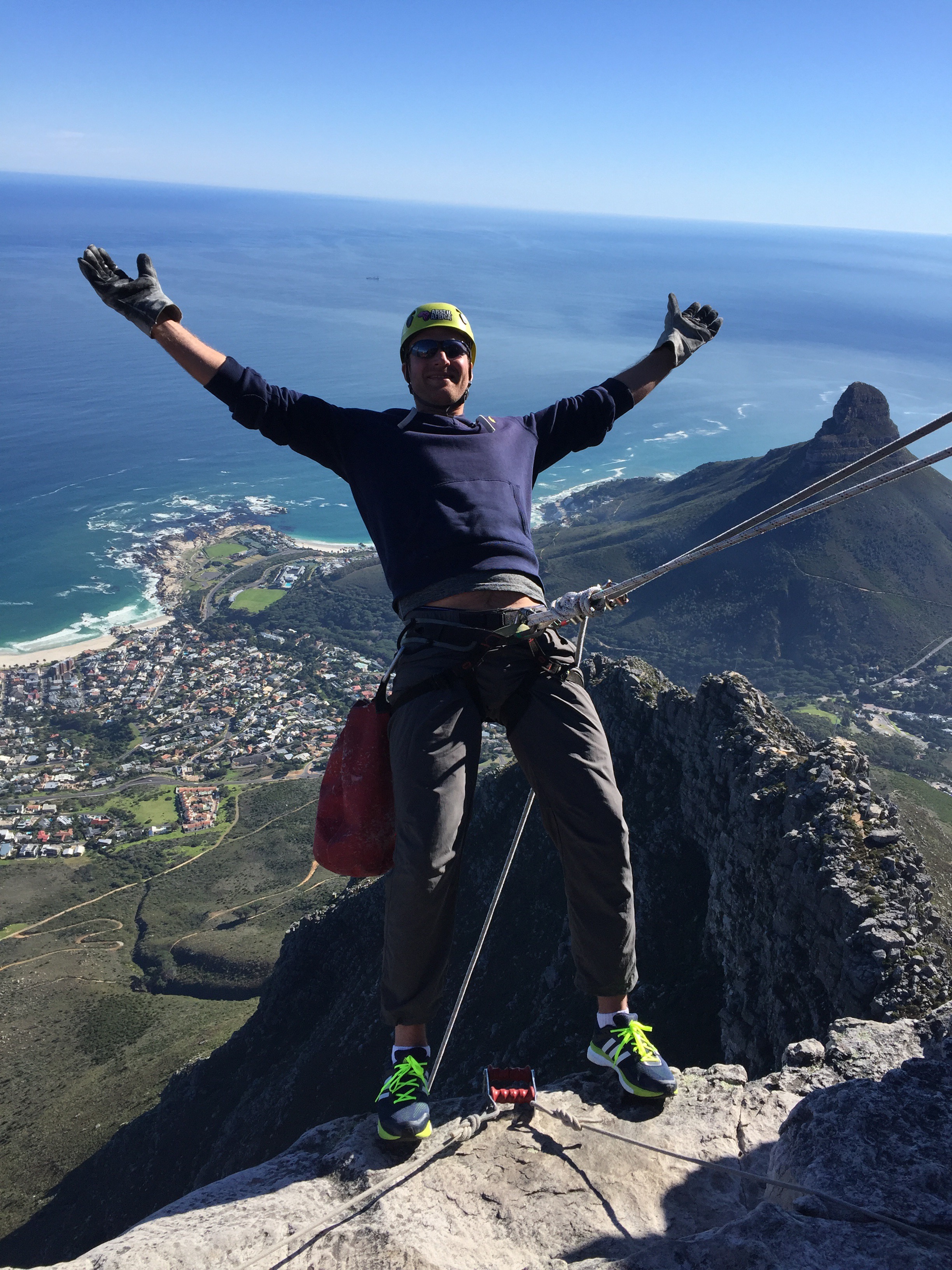 The hike up created warmth in the South African winter and the panorama with which we were rewarded was spectacular. So, getting back down…..Having recently jumped off a bridge in Zambia, I felt reasonably confident in South African abseiling equipment and surrendered myself to gravity with a big smile on my face. My friend, on the other hand, had no such prior experience, and earmuffs had to be placed over younger spectators’ ears to mute the colourful language that accompanied her descent.