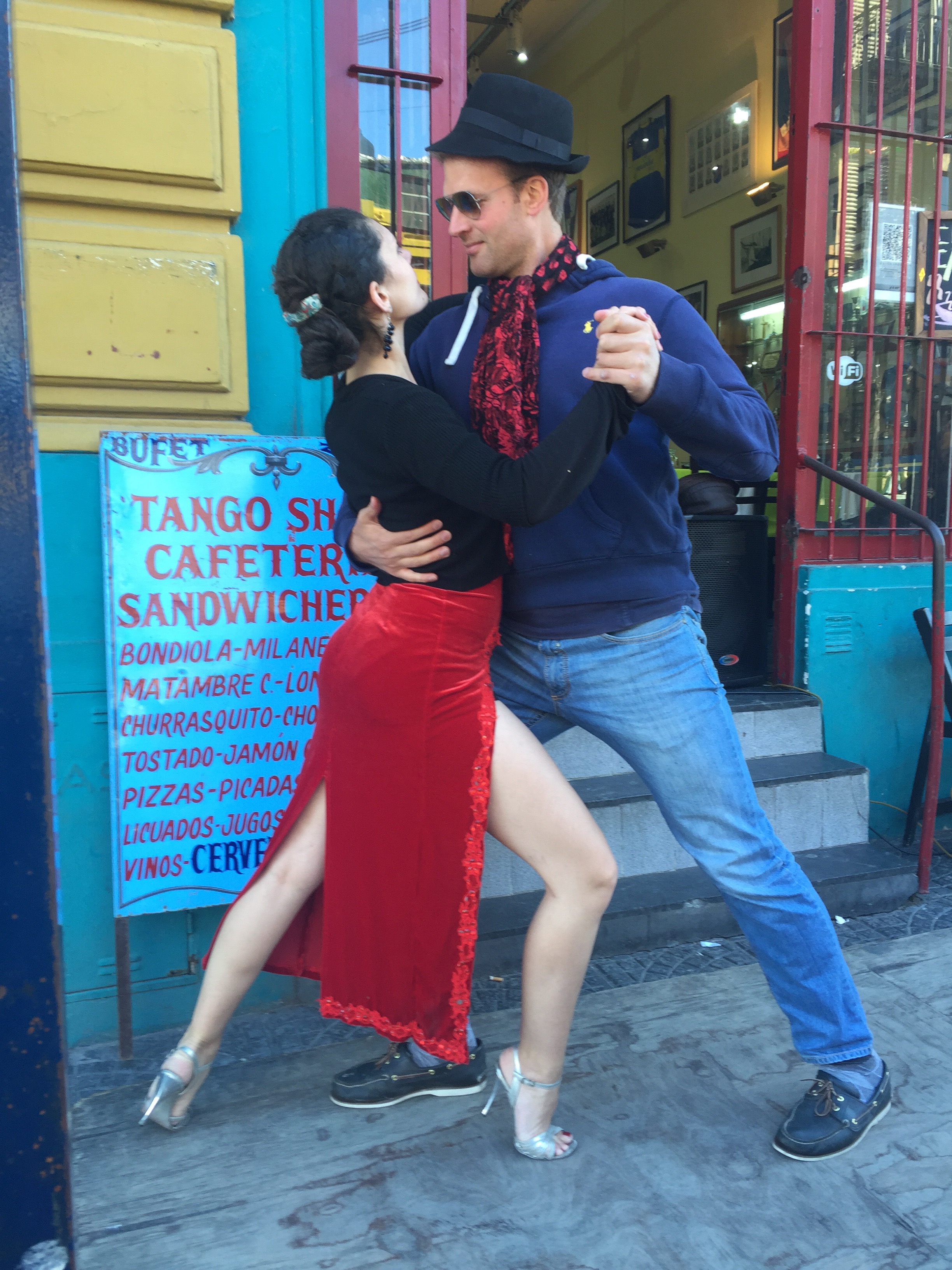 Further wanderings the following day brought me to La Boca, home to Boca Juniors, one of the most famous football teams of this entire, football-mad continent. It is a brightly coloured, vibrant quarter, although less affluent than the more central neighbourhoods. Having forgotten to take photos of my tango class, I was happy to find an obliging tango dancer who helped me to replicate, somewhat dishonestly, the poses I might have struck in my lesson.