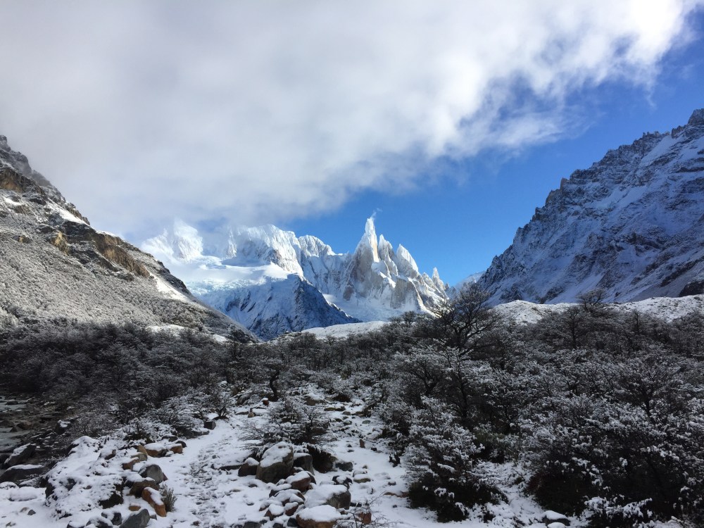 Upon our return to El Calafate, I then hopped on the bus to El Chaltén – self-proclaimed trekking capital of Argentina. The bus company clearly used the same handyman as the hostel, evidenced by the fact that the heating was kaput and the ambient temperature was sub-zero. Stoical smile deployed, I donned my hat and gloves and hunkered down.