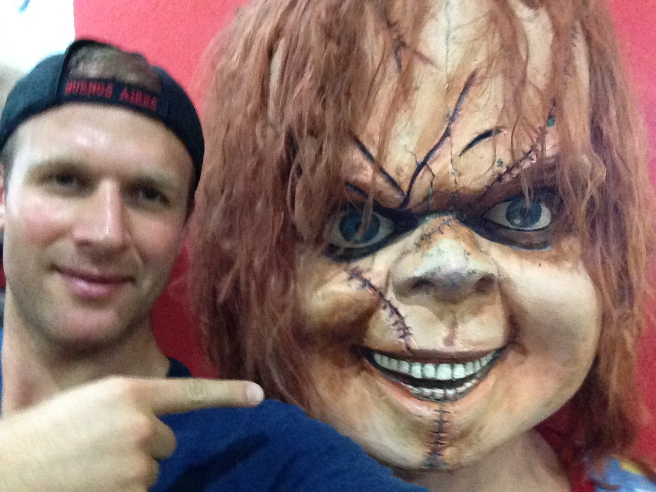Inside was the most eclectic group of characters you are ever likely to see. Darth Vader and Yoda were having a staring match with The Beatles; Batman and Superman were in attendance (and not squabbling, for once); the pope, Lionel Messi, Michael Jackson and David Bowie had all stopped by for tea and scones. And there was a giant Chucky. Not a place to be during a powercut if you have an active imagination.