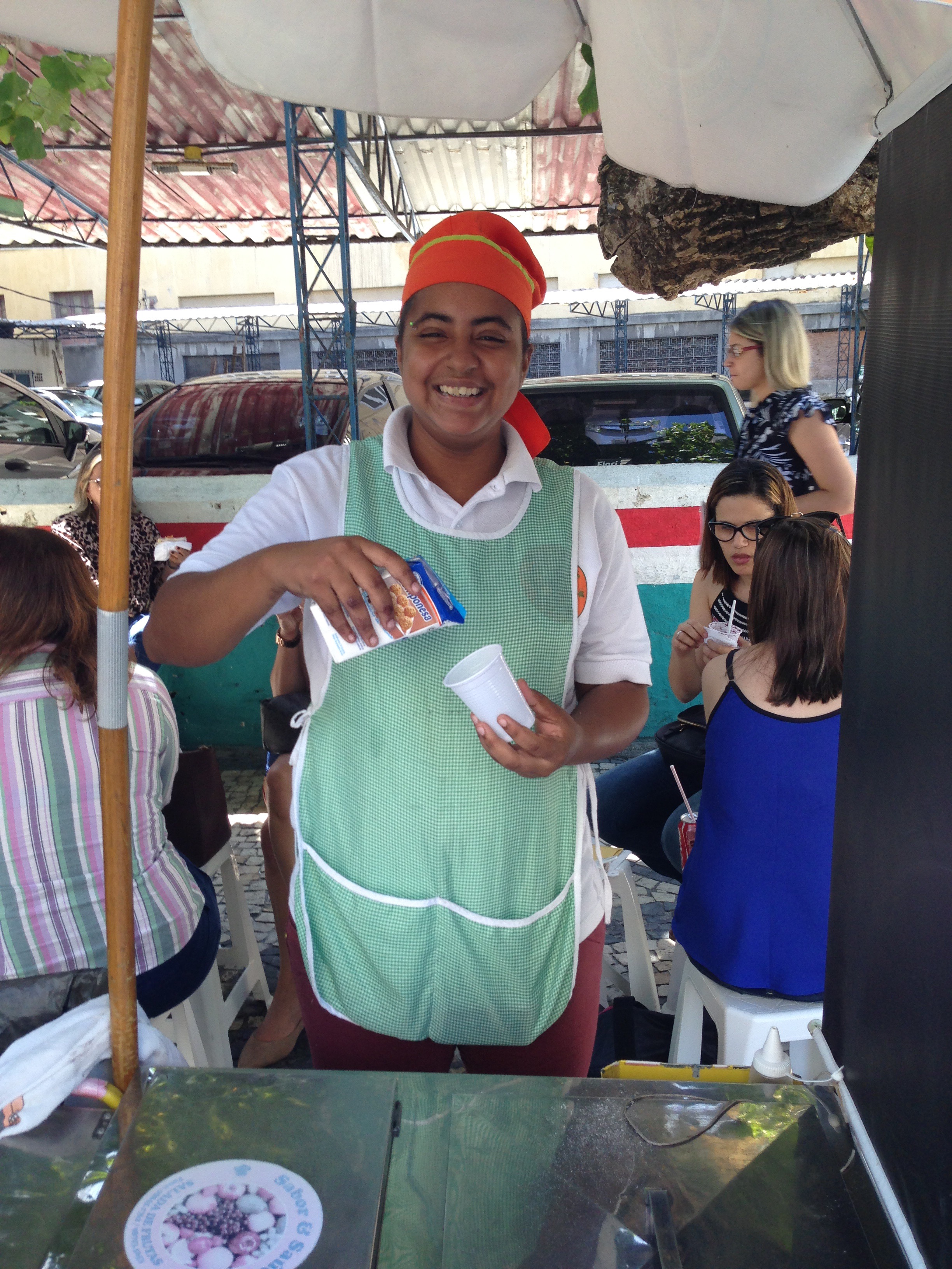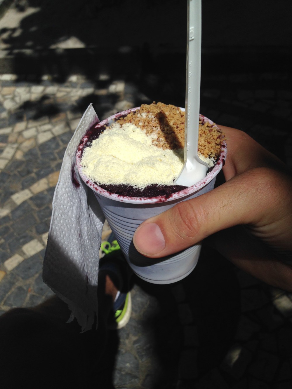My stomach audibly reminded me, at that point, that I had missed lunch. I typically move swiftly from hungry to “hangry” (anger due to being hungry) so, to avoid this, I headed across the road to a street vendor. I don’t really know what I ordered, but I do know I ordered a “large”. It seemed to be a plastic cup of acai berry sorbet, condensed milk and biscuit crumbs. It was as good as it sounds!