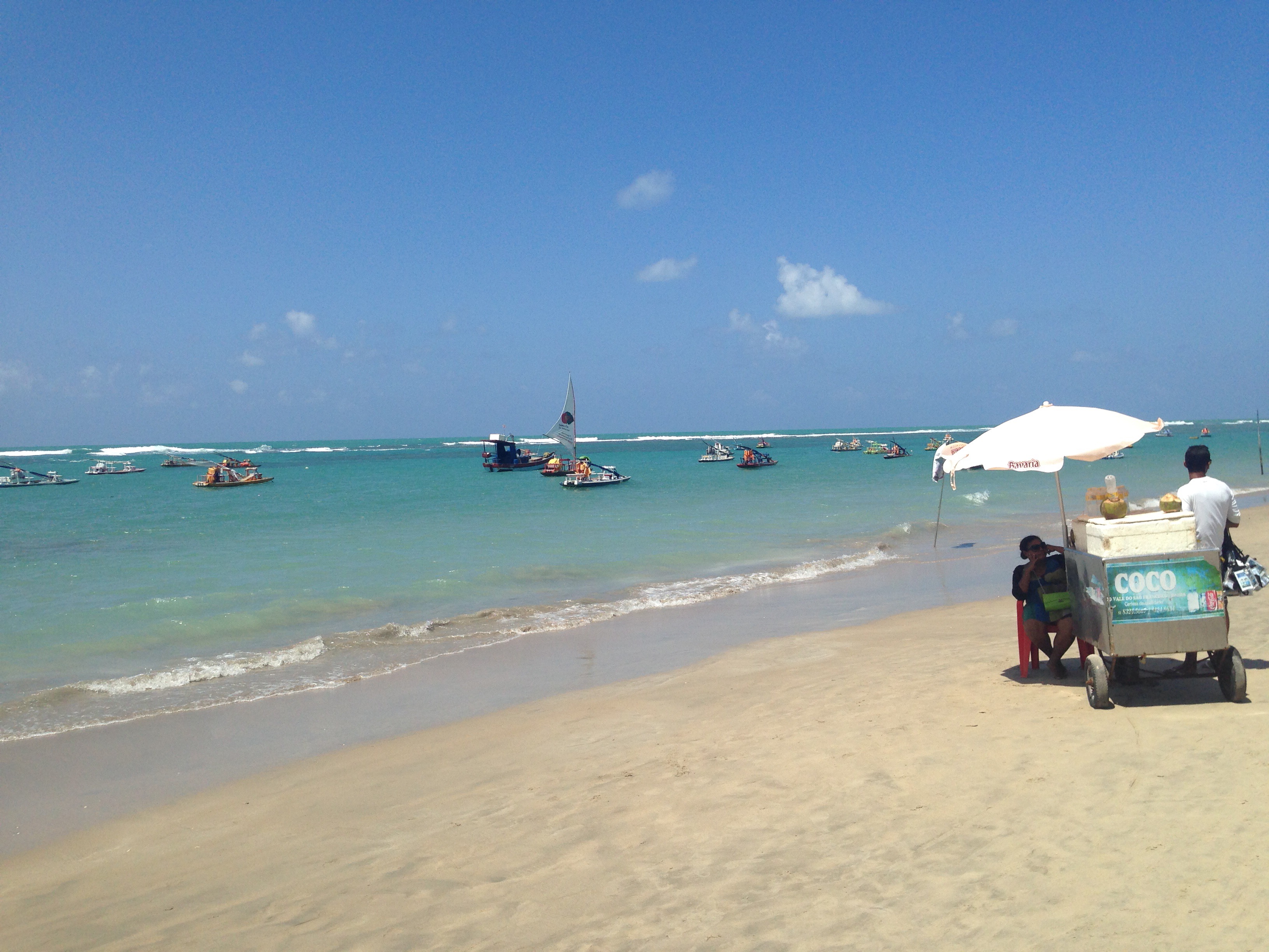 As I had hired a car for my time in Recife, I decided to put it to good use by spending a day in Porto de Galinhas, some 60km away. Between speed limits and potholes so large they had their own gravitational pull, the journey took an hour. After a sumptuous tapioca pancake as late breakfast, I strolled along the beach to digest.
