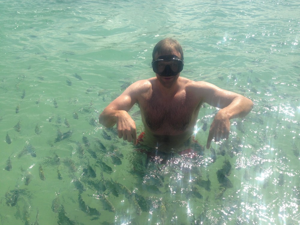 On reaching a natural pool, I was armed with a diving mask and a handful of fish food and this ensued…