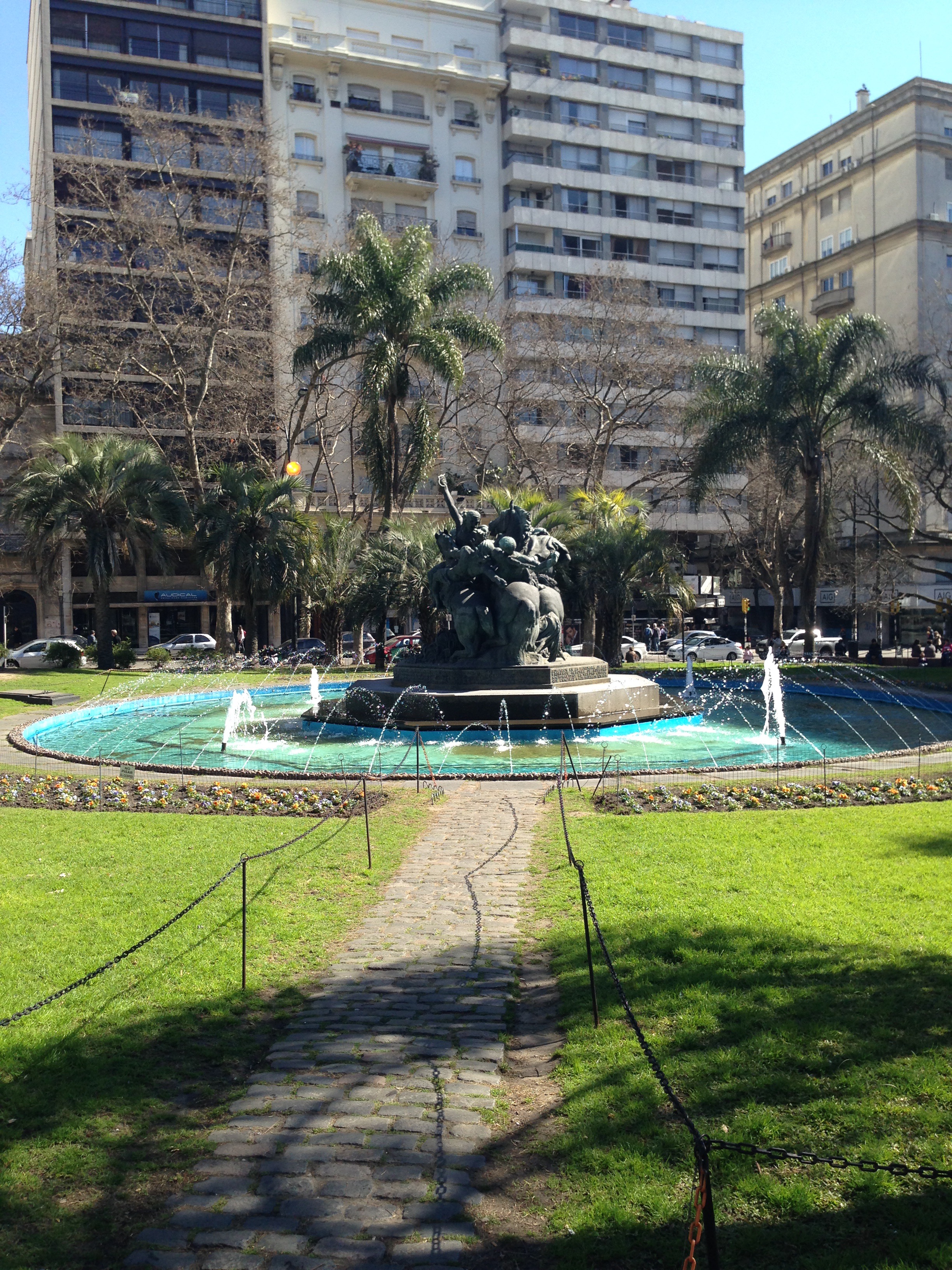 Lazy, winter sunshine strolled casually down the cobbled streets, sometimes keeping pace with me, sometimes pausing so that I could enjoy the contrast of shadow. Montevideo was not so much encouraging me to “do” as to “feel”. I felt no urge to dash through the city snapping photos of churches and museums. No, the gentle beauty of my surroundings encouraged more an introspective, romantic frame of mind. I sat for while in Plaza de Zabala, listening happily to parakeets chattering garrulously as I basked in hazy, pleasant daydreams.