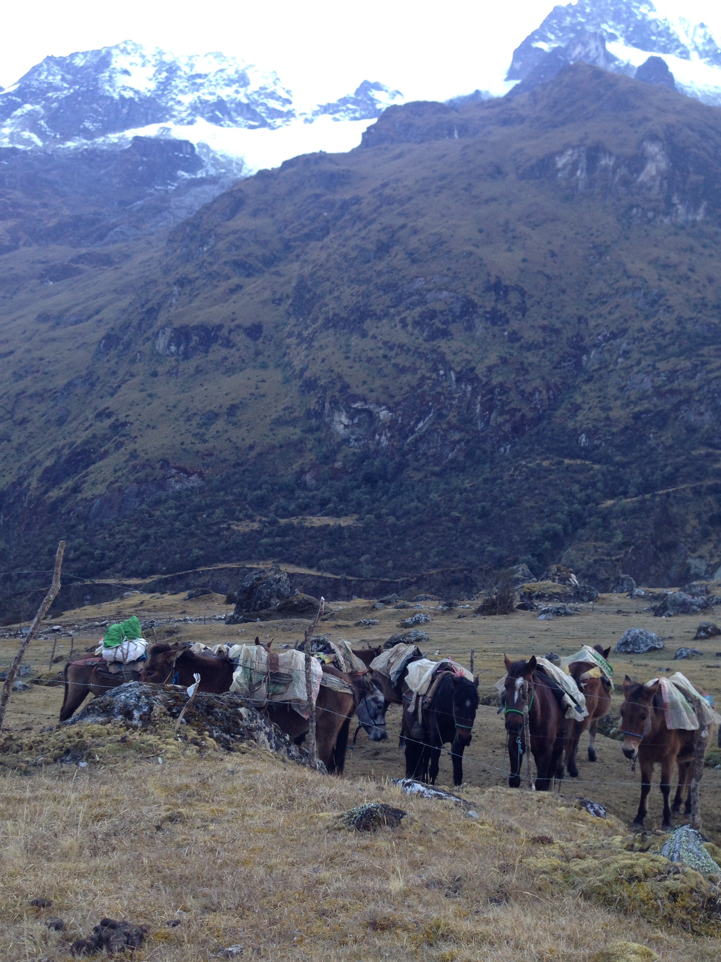 The literature we had received about the hike had dubbed day 1 “the hardest”. The literature was not lying. We continued our long and laboured ascent into the heady heights of the Salkantay pass where oxygen seemed to have taken a leave of absence. We stopped occasionally for Wilson, our guide, to monitor our heart rate and oxygen saturation levels to ensure no one was doing themselves a mischief. We were a pretty fit bunch so no one’s readings were too alarming.