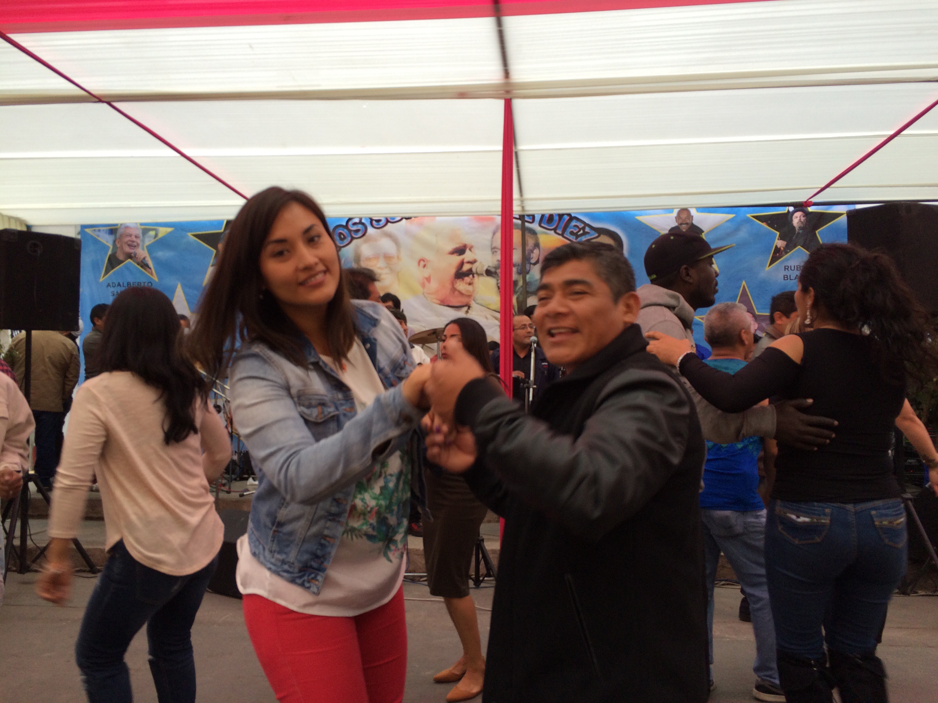 When we arrived we found a section of the street closed off and under the shelter of a canvas roof. Here an unfeasibly large band was in the process of setting up for what, I was told, would be an afternoon of Salsa, Meringue and Cumbia.