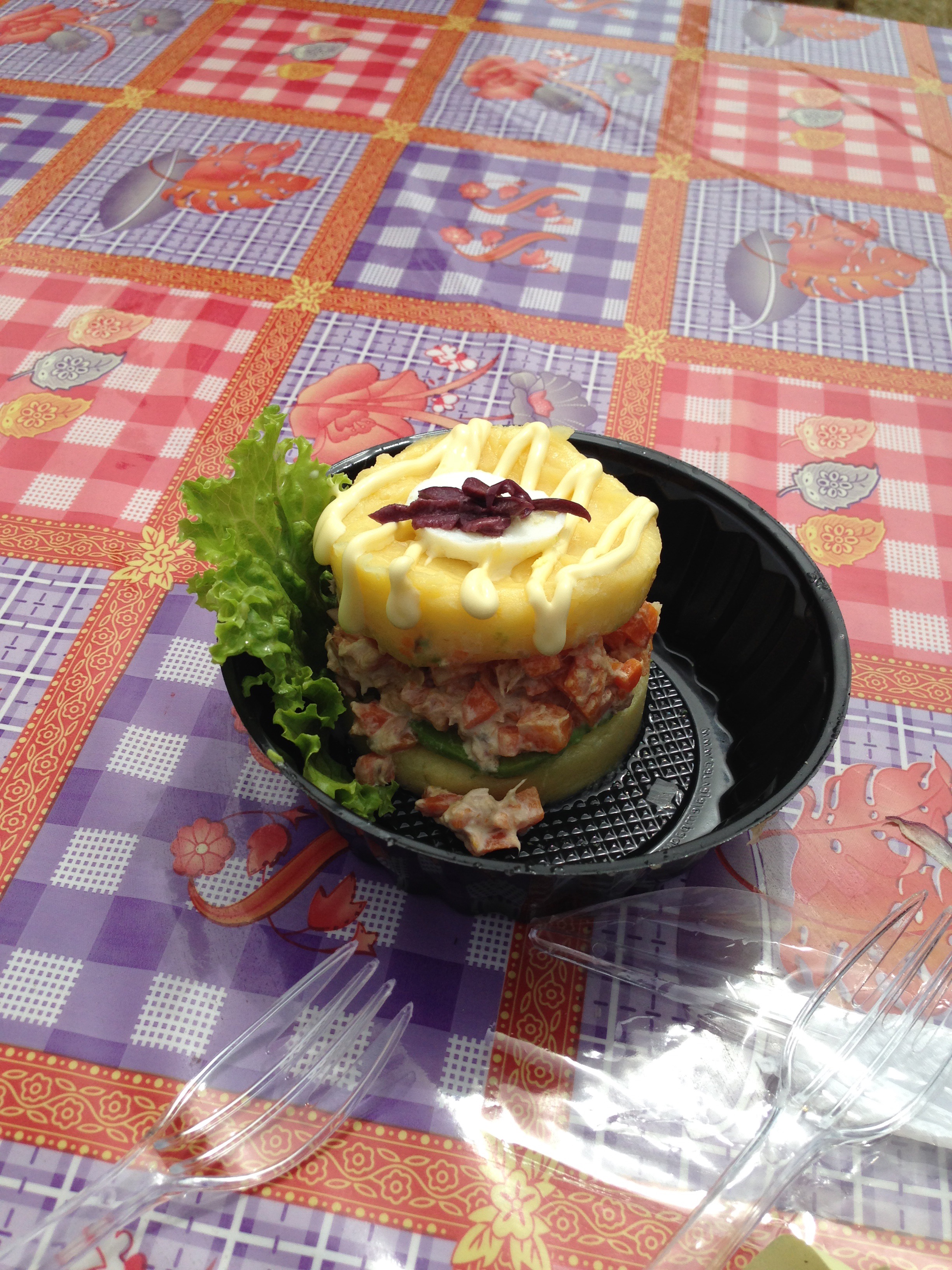 The setup was a sprawl of marquees and gazebos with stalls selling every food imaginable. (And some unimaginable foods too.) Much as I would have liked to, eating one of everything would have rapidly produced a Monty Python Mr. Creosote moment, so I decided to be strategic. I started with ceviche and leche de tigre (a sort of milky drink with chunks of raw fish, onion and corn that tastes far better than it sounds) and then moved on to causa, a kind of potato and avocado cake typically with either chicken or salmon filling. I completed this celebration of gluttony with some aji de gallina, a chicken dish with rice and a nutty sauce. I washed down this feast of deliciousness with two different craft beers from the local Lima scene.