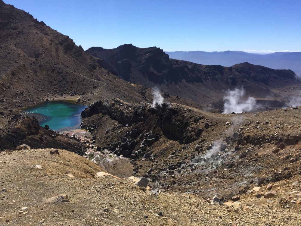 The walk begins in the Rocky valley below and follows a gruelling climb to a high saddle where one is rewarded with panoramic views of volcanic crags and lake filled craters, some giving off steam and the unmistakable, nostril-assaulting stench of sulphur. Having gained this vantage point, and with a distinct aversion to walking down steep slopes due to the knee impact, I decided to run the downhill portion of the crossing, meaning I was done before lunchtime and had well and truly messed with the itinerary, which had not factored my surrender to gravity on the latter half of the hike.
