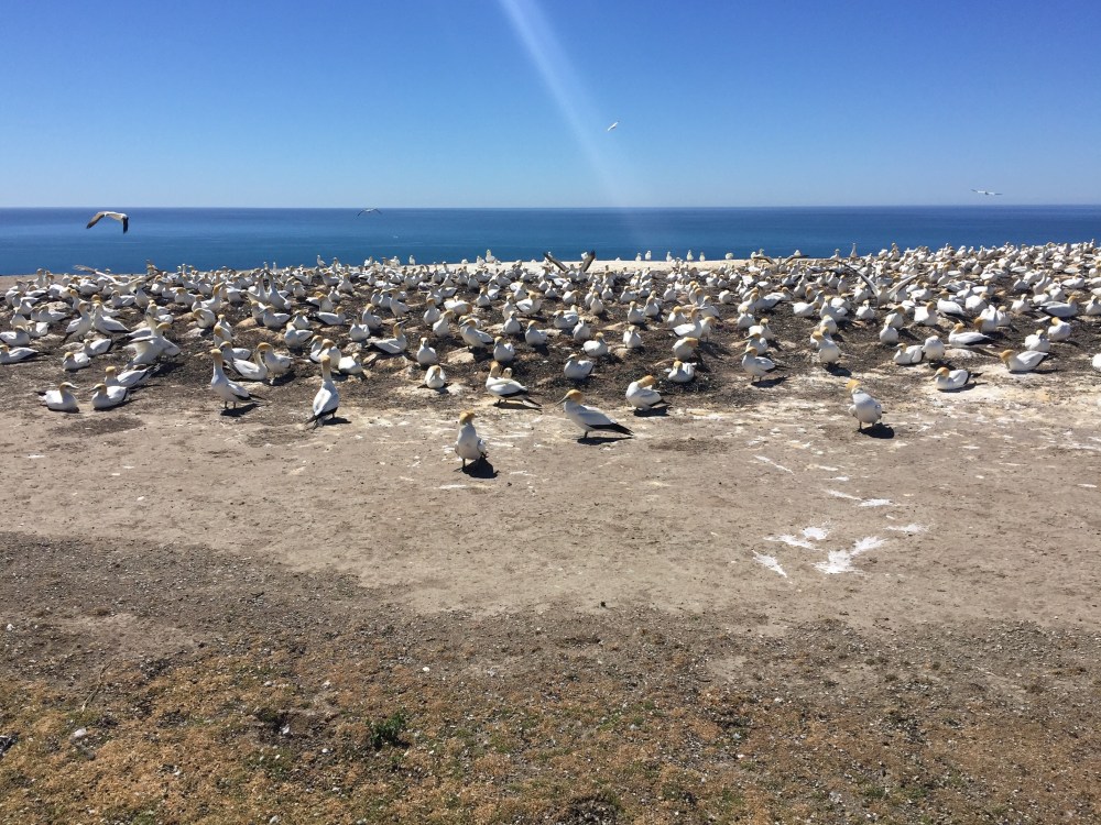 Cape Kidnappers, a few miles south of Napier, is home to a colony of gannets – rather pretty seabirds who have the astonishing ability to fold away their wings and plunge up to 10m into the sea from a great height to catch fish. They also have a romantic way of greeting their partner which I can only describe as part necking, part “beaking” (©20th December, MMXVI)