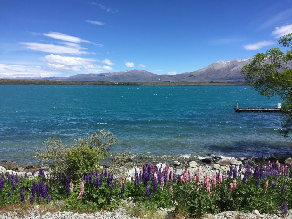 A new dawn brought renewed energy and I made swift headway in a south easterly direction, crossing lush farmland as the Southern Alps rose to greet me on the horizon. By late afternoon, I was strolling among the clusters of lupins beside Lake Tekapo – more or less the mid-point twixt Akaroa and Queenstown.
