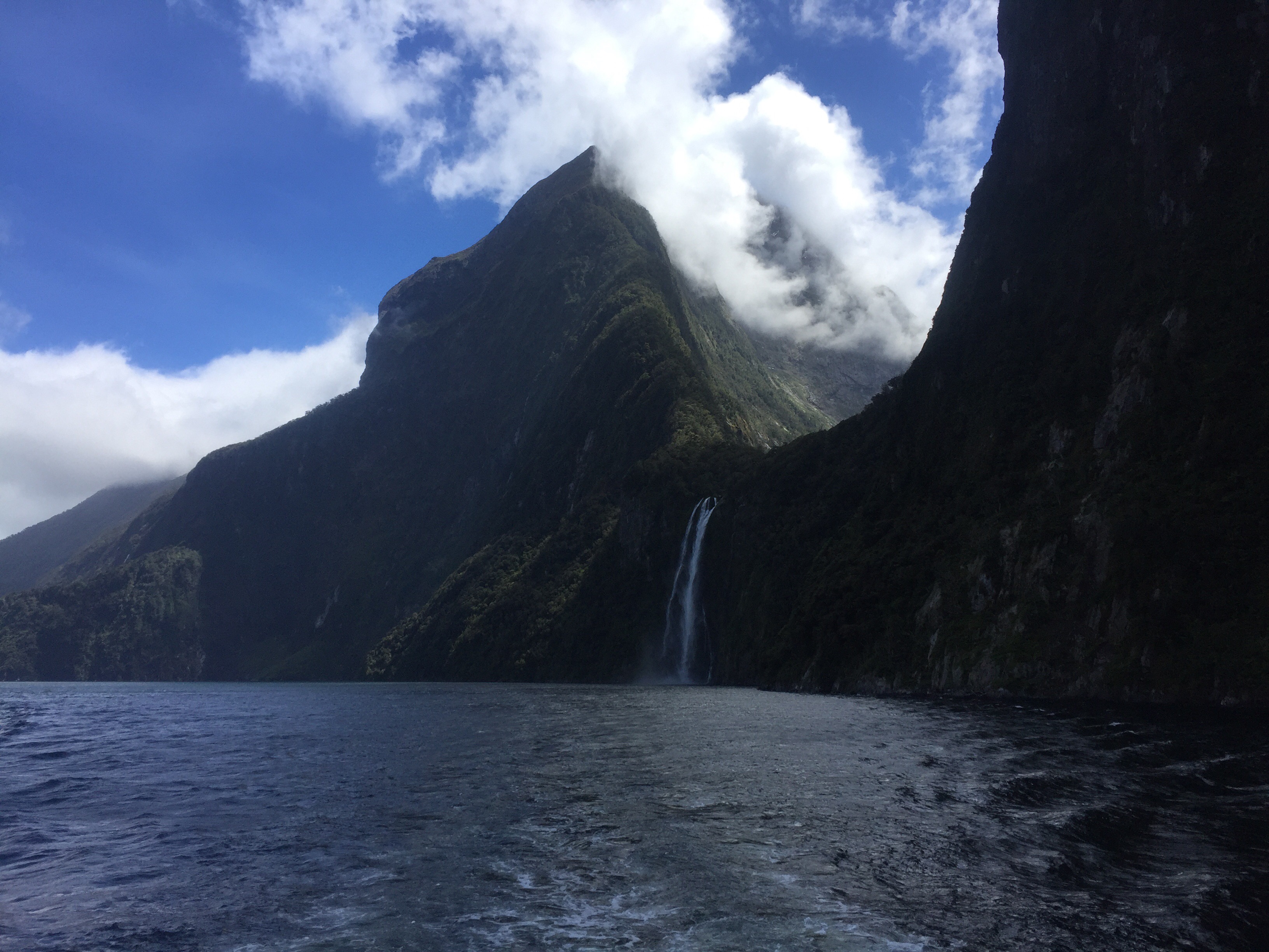 As the pictorial evidence confirms, day three was an early start. I was traveling via coach to Milford Sound, a fjord on the south-west coast popular among tourists for its great natural beauty. The mountains rise directly from the sea, dwarfing the tourist cruise ships that explore the fjord and encouraging a limitless number of selfies from all and sundry. I was also guilty, earflaps and all.