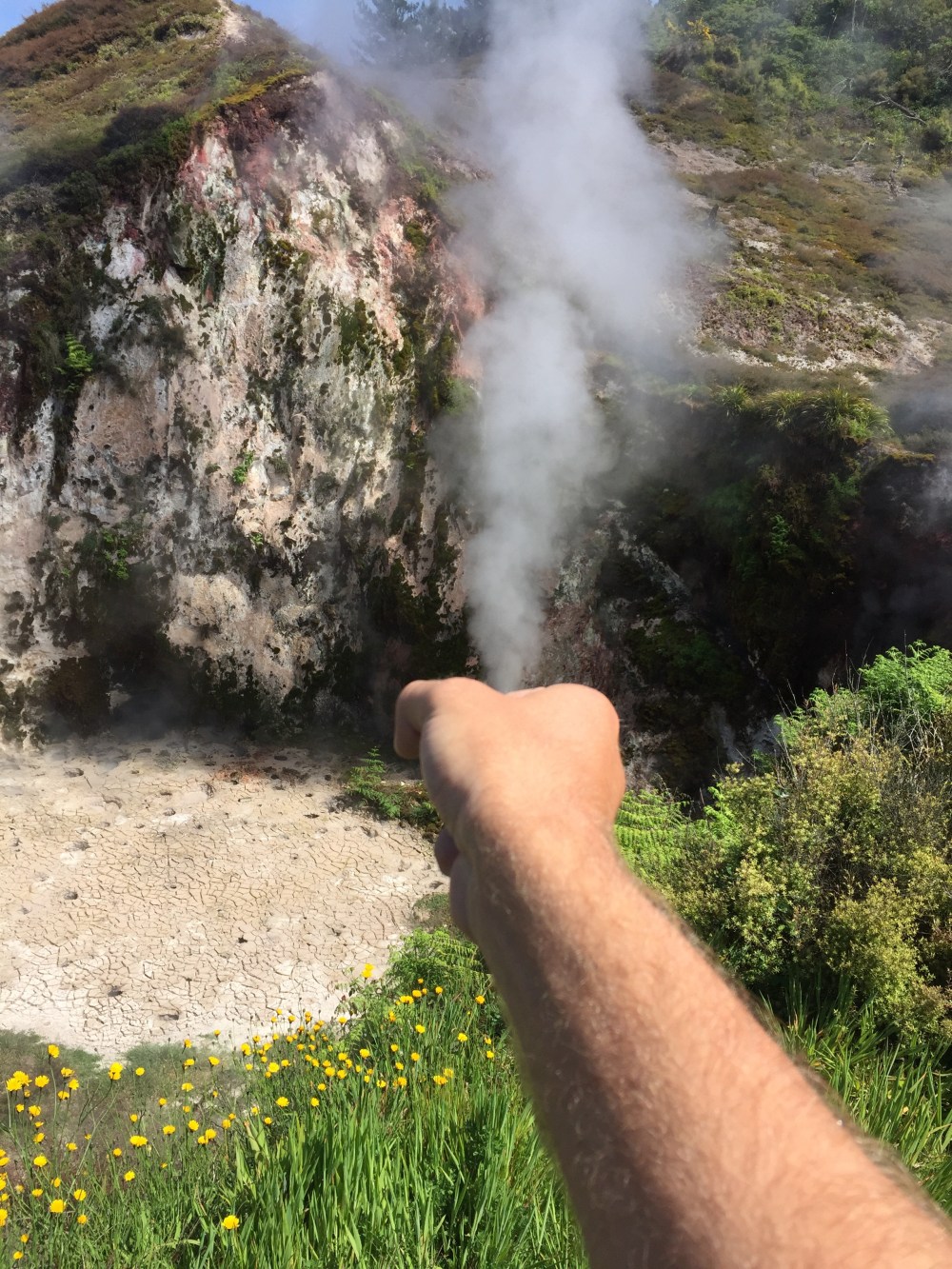 Leaving Lake Taupo behind me to the south, I set a course for Rotorua. Scarcely was I post the Taupo town limits when a signpost informed me of the grandly titled “Craters of the Moon”. “Well, as far as detours are concerned, it’s just one small step of for man”, I thought and then laughed at my own joke.