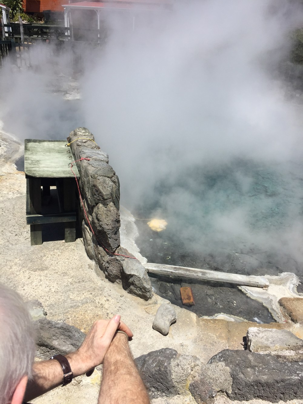 Whakarewarewa (a greatly abbreviated version of the full name) is a traditional Mauri geothermal village and was my first scheduled stop in Rotorua. Arriving 45 minutes prior to the guided tour, I had time to tuck into a hangi lunch. Hangi cooking uses the steam vents and hot pools in the village to boil and stream the food, often leaving it more succulent than if it had been cooked by other methods.