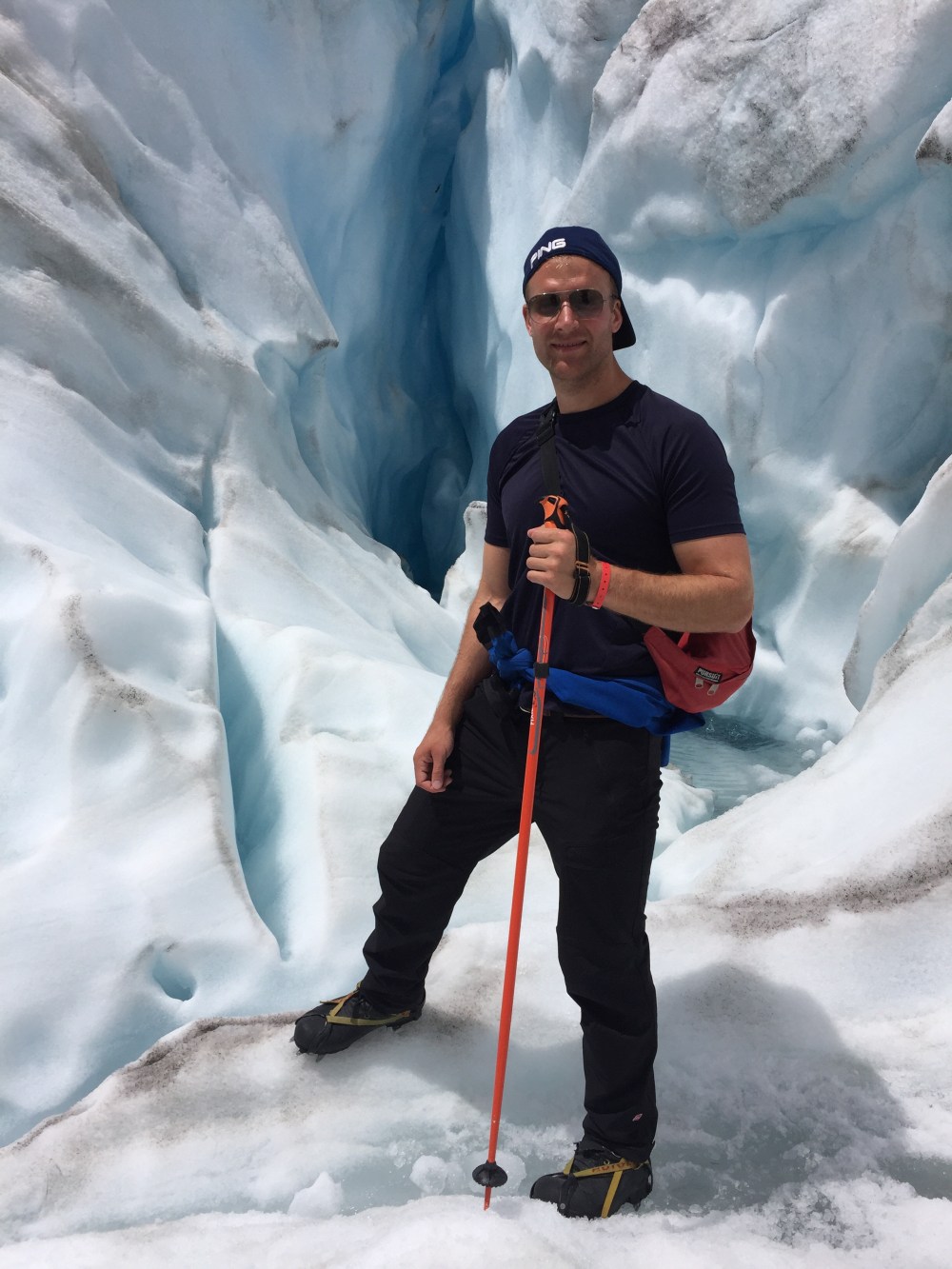 We deployed crampons as a group and followed our guide along a track cut into the ice, pausing for optimum photo poses.