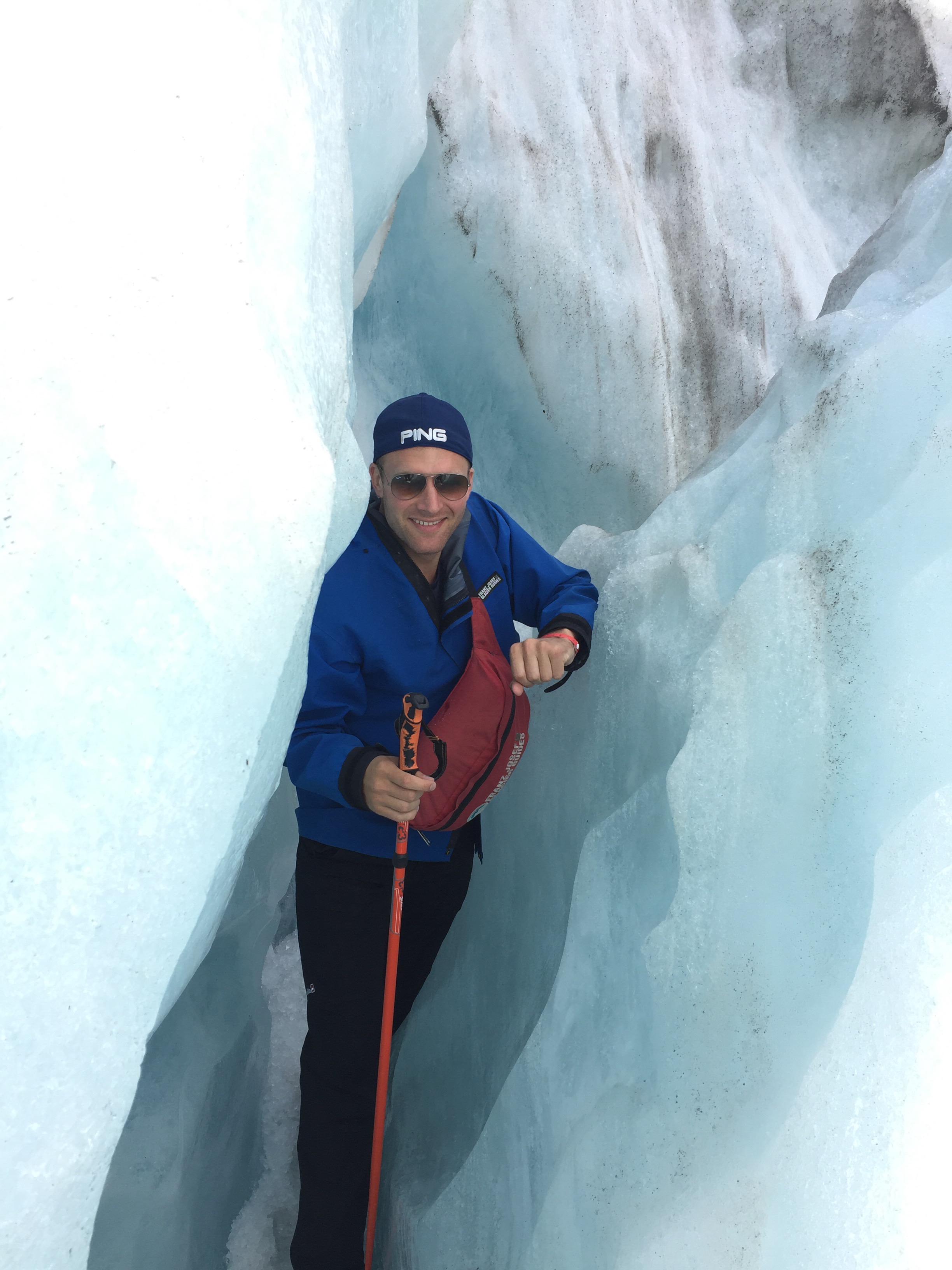 We deployed crampons as a group and followed our guide along a track cut into the ice, pausing for optimum photo poses.