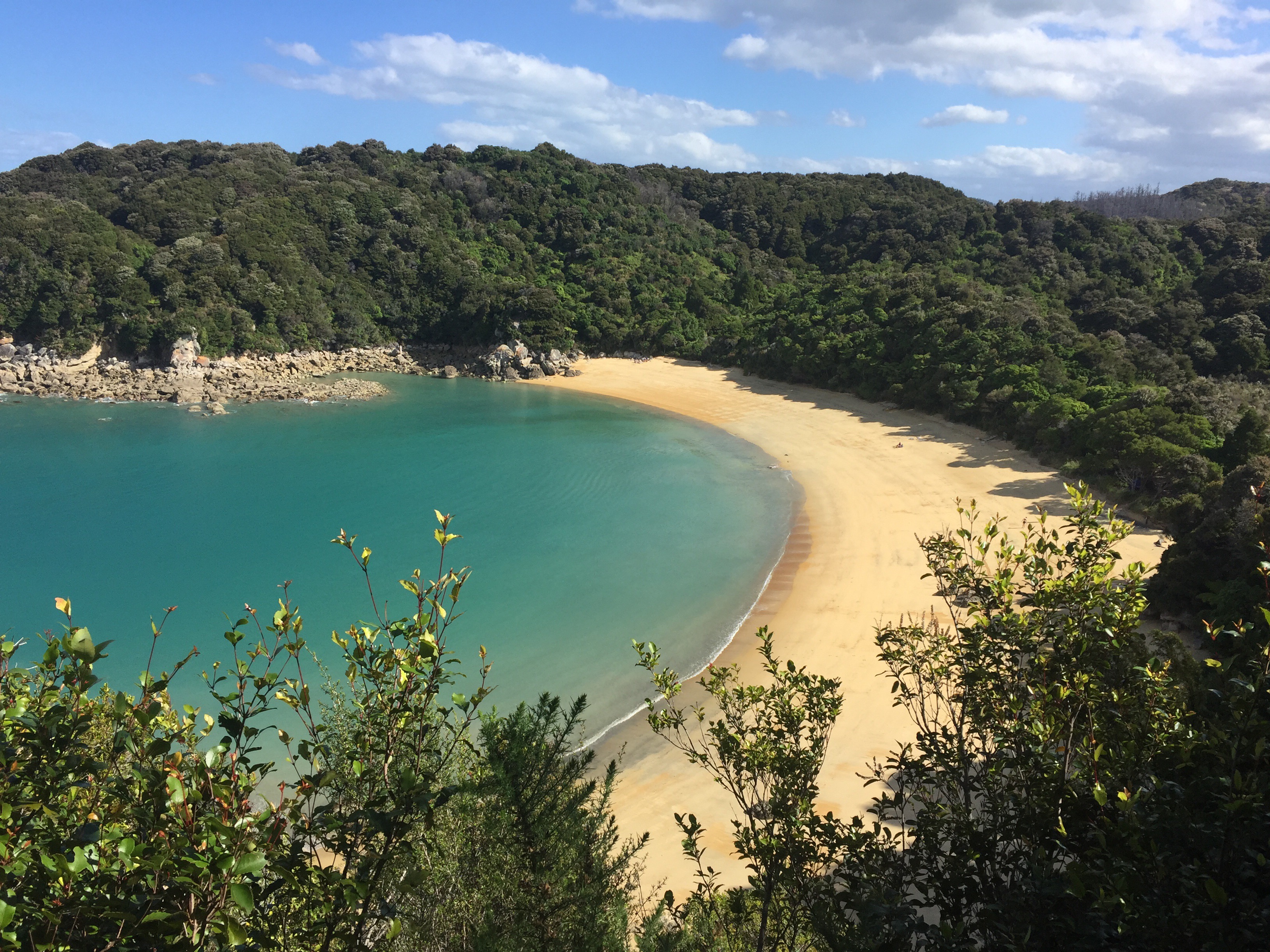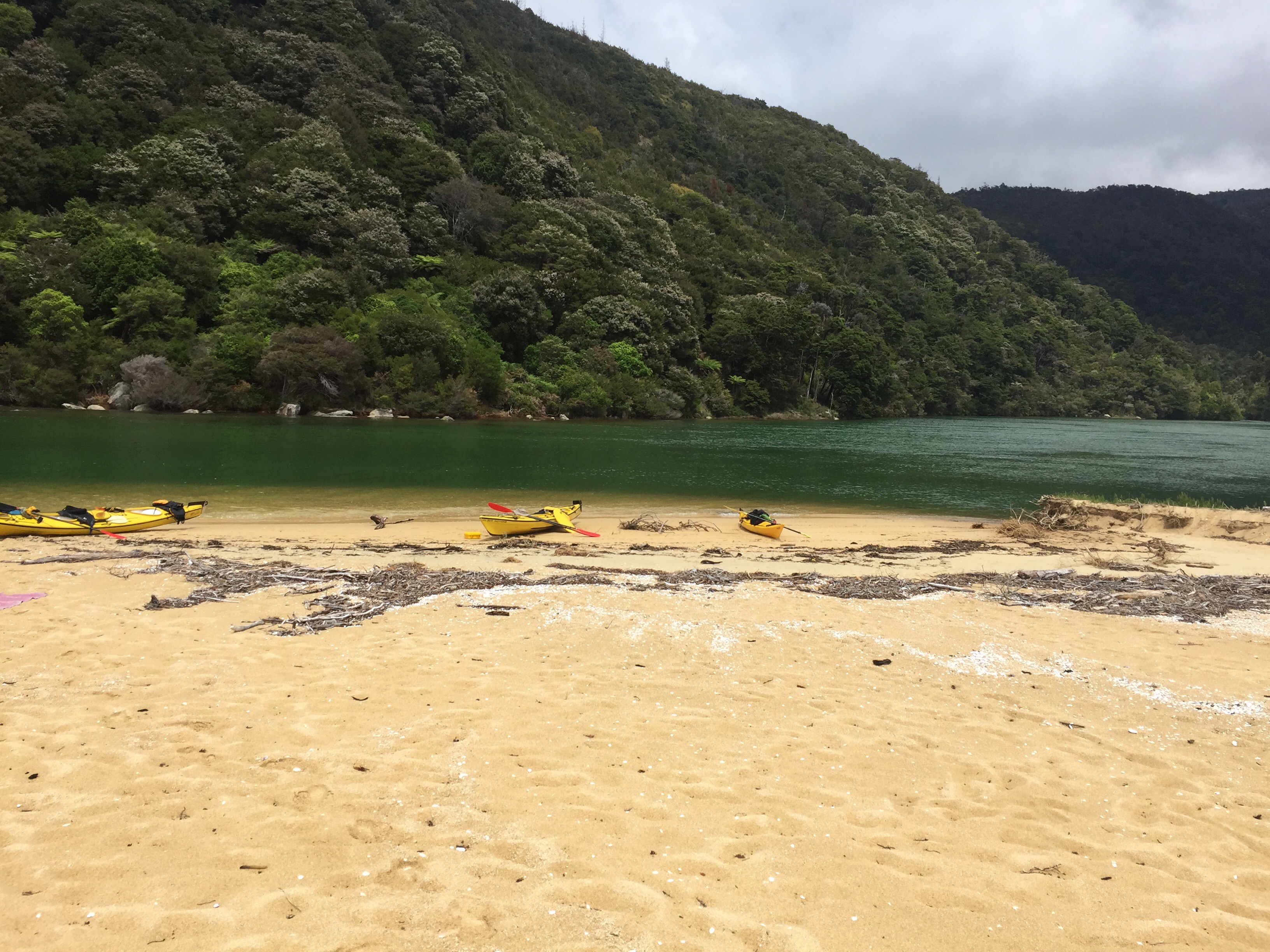 I would be staying in Marahau that evening, a small town at the south-eastern end of the national park, and had called ahead to book a 3-day hiking and kayaking experience from the following morning. This entailed adding a tent and roll-mat to my big hiking pack and catching a water taxi up the coast to Totaranui to the north. From there I would take three days returning to Marahau.