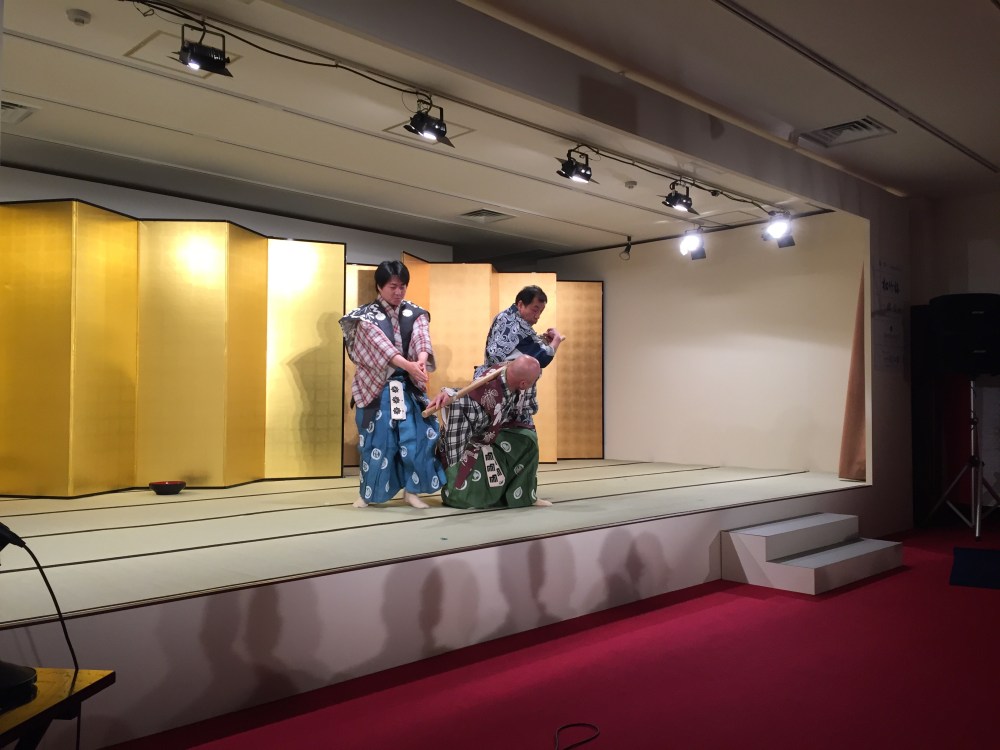 My favourite part of the experience was, by far, the theatre. A short comedy, it tells of a master who, concerned his servants would drink his sake during his trip to a neighbouring town, ties them up. With a healthy dose of farce, the servants work out how to feed each other ladles of sake despite their bonds and the master returns to find them considerably worse for wear. I didn’t understand a word of it, yet understood it perfectly and was lol-ing and rofl-ing the entire time.