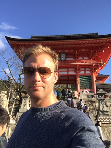 Standing proud atop a hill in the Higashiyama district in the south-east of the city is the Kiyomizu-dera temple. This vast compound, with its imposing pagoda and even larger temple, is a major draw for tourists and its terraces and pathways are often carpeted with the non-indigenous species selfius turisticus, a specimen of which can be found below.