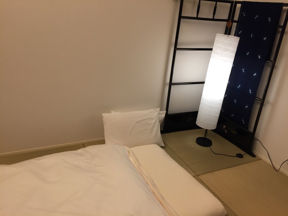 My room on the first floor was a traditional futon on tatami flooring (which, I would later discover, was gloriously comfortable) and even the door of my bathroom sported a sticker with “welcome, John”, the comma alone stifling my toilet humour.
