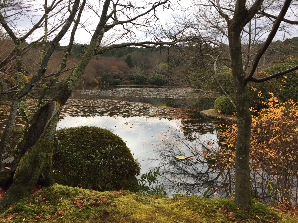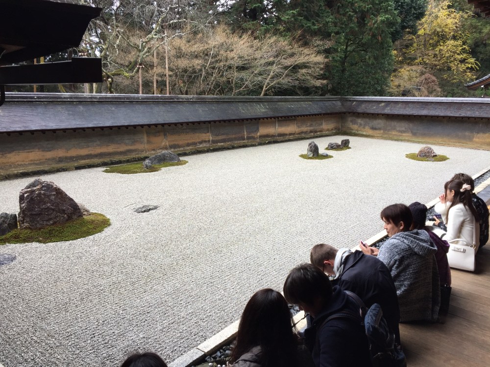 Next stop, very close by, was Ryoanji, a shrine famous for its gardens, in particular its Zen rock garden. (If you’re picturing Buddhist monks with electric guitars, I’m afraid it’s the other kind if rock.) The whole place was exquisite, a perfectly organised wilderness with a kaleidoscope of winter hues.