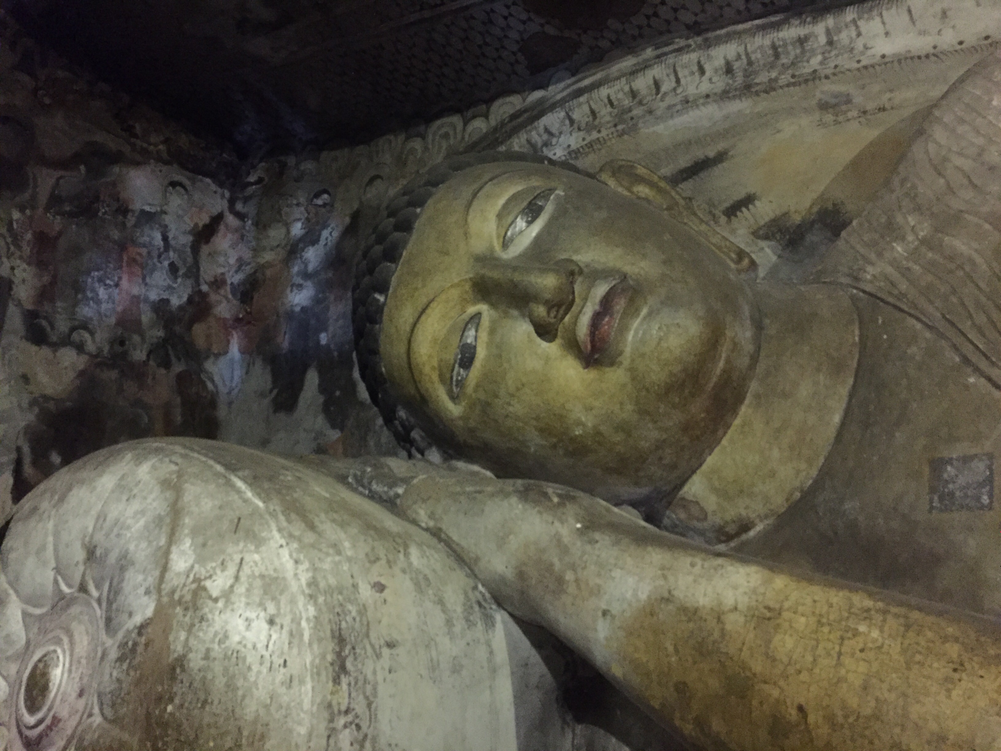 Behind and above the imposing golden Buddha and golden tower, carved deep into the living rock are five chambers of an ancient monastery. These caves are filled with statues of Buddha of varying sizes, one 14m long that has been chiseled directly from the rock of the cave itself.